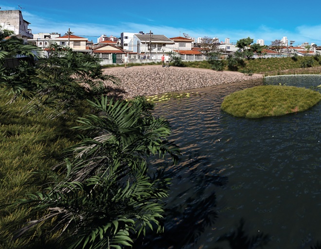 SÃO PAULO/SP O projeto traz recuperação das margens do Córrego Antonico (Bacia do Pirajuçara), na zona oeste da capital paulista, com estruturas de contenção naturalizadas, uso de espécies vegetais fitorremediadoras e escoamento superficial das águas com amortecimentos antes da chegada ao leito do córrego.