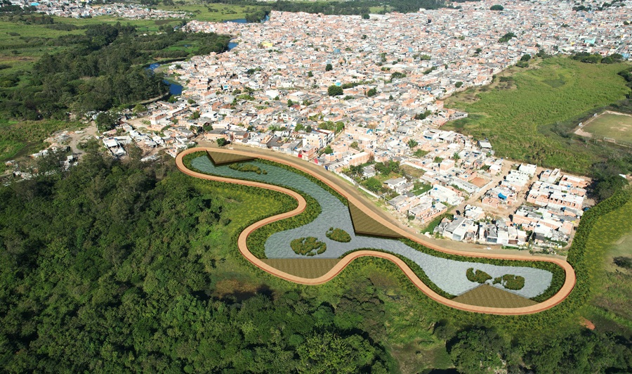 SÃO PAULO/SP Projeto de reurbanização de comunidade em situação vulnerável (Favela Mauro) e abertura do córrego Paraguai, com a recuperação de suas margens mediante e criação de parque com pistas de caminhada, ciclovia, travessias e deque e espaços de conexão com ambiente natural